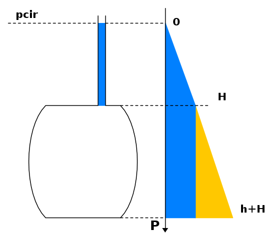 In idraulica c'è un concetto fondamentale : p.i.c.r. : Piano idrostatico dei carichi relativi. in associazione con il piano dei carichi assoluti (la cui differenza sta nella pressione atmosferica, se ricordo bene); il concetto del piano idrostatico si applica ai fluidi in quiete. in questo caso la pressione di una qualsiasi particella del fluido dipende solamente dalla quantità di liquido che lo sovrasta, e dalla densità dello stesso che, nel caso di fluido omogeneo, può essere trasformata in una informazione di profondità, senza commettere errori, a cui daremo il nome di "quota". Estendendo questo concetto troviamo che ogni particella che si trovi alla stessa quota sarà sottoposta alla stessa medesima pressione.