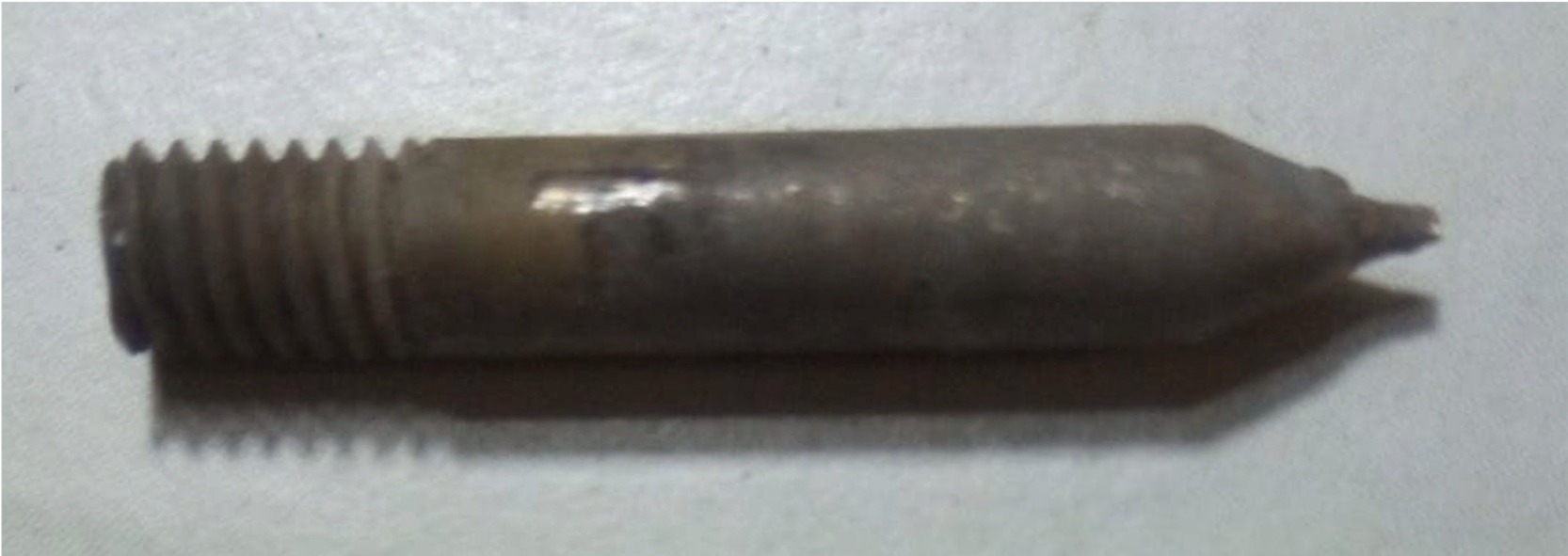 Ho trovato una vecchia punta in rame auto costruita. La misura è 30mm x 4mm filetto un normale 4 MA. Sembra brutta perché è ossidata ma basta passarla nel flussante o fargli un bagnetto nell'acido per farla ritornare del colore naturale.