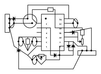 Riguardo ai diodi: penso che si possano usare anche tutti 1N4148. L'assorbimento dall'alimentazione non supera i 12mA e la corrente di uscita deve essere inferiore a 0,5mA