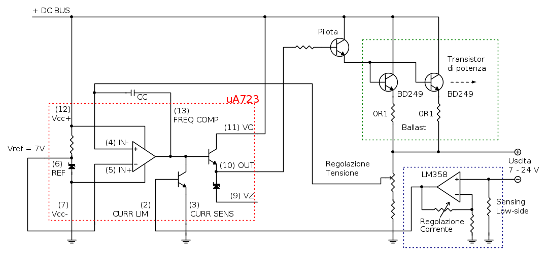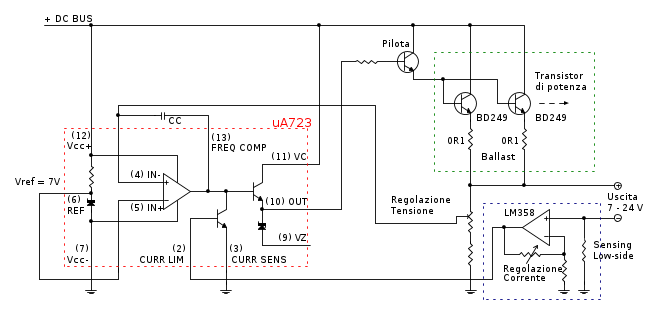- È dannatamente classico. 723 pulito, 7V di riferimento, protezione in corrente bella "ignorante".