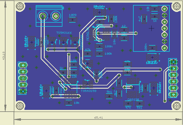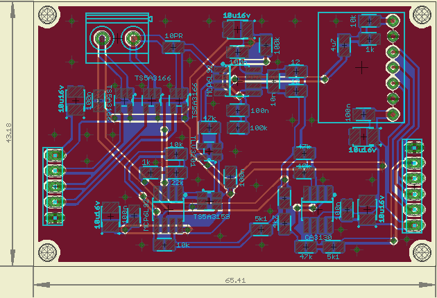 Come ho detto, questa considerala una prova, per ora. (se ti servono i files Eagle per controllarlo in dettaglio te li allego, basta dirlo ... se non hai Eagle, credo che il Kicad di cui parlavi un po di post fa li possa importare, anche se Eagle NON puo importare Kicad, pero' e' tutto da vedere in che modo poi li importa)