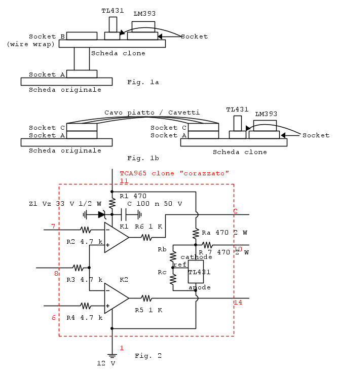 a) l'utilizzo di uno zoccolo (Socket B) con i "piedi lunghi" da "inserire" nello zoccolo originale (Socket A del TCA965)