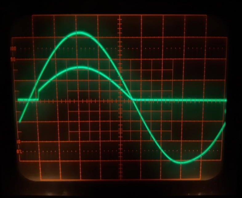 Questo è un segnale simile come ampiezza mandato sul raddrizzatore di precisione, come da schema del post precedente, realizzato con CA3140 che è quello che piu si avvicina( tra quelli che possiedo ) alle caratteristiche del componente richiesto.