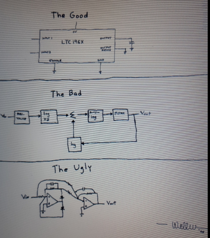 Quindi stavo cercando in rete qualche spunto interessante per avere una visione più completa e sono finito a leggre la nota tecnica di Linear riguardo i convertitori Rms to Dc AN106.