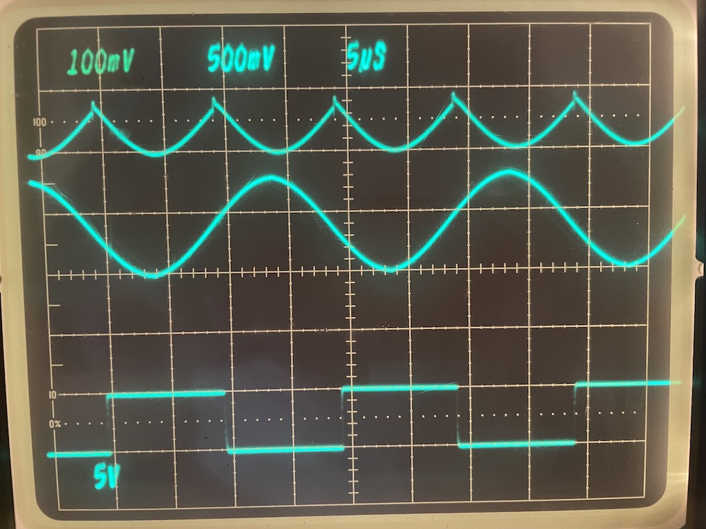 Qui c'è qualche oscillogramma a 50kHz, si vede qualche difetto nella commutazione ma niente a che vedere con la versione precedente del circuito con i CD4066, il segnale è molto molto più pulito grazie al TS5A3159 che è un componente molto più adatto. Penso che misure oltre ai 100 kHz siano tranquillamente possibili, vedrò quando monterò la scheda con il micro (e riceverò l'operazionale corretto).