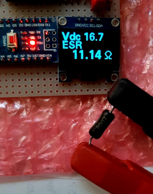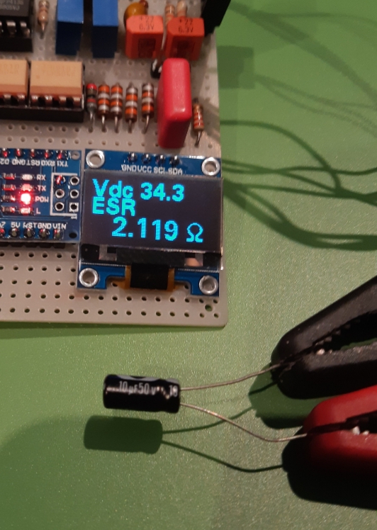 Sul display si vede Esr e Vdc.