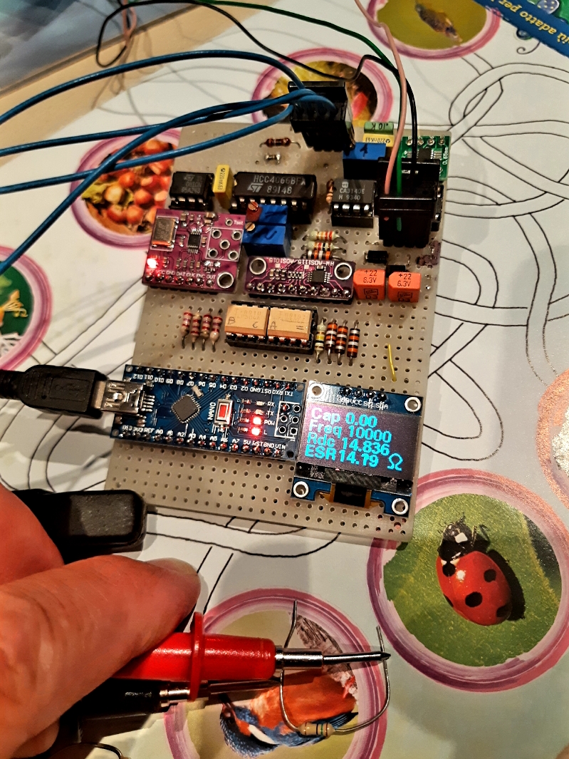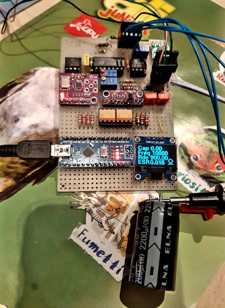 La gamma di misura ragionevole della capacità come ho detto sopra va da 47 nF a 47 µF. Non è tantissimo, farebbe comodo arrivare ad un 10 mF, ma devo vedere se è possibile. Bisogna senza dubbio cambiare strategia di misura.