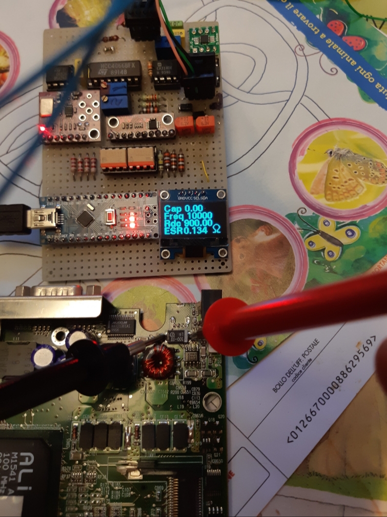 Quindi misura di ESR a diverse frequenze di condensatori fino a 10nF senza smontarli dal PCB.