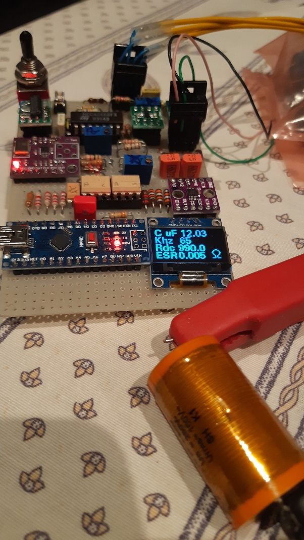- Il circuito è in accordo con il LCR-T4 su un elettrolitico da 4,7 µF (+0,2%, entrambi leggono attorno ai 5,200µF) (**)
