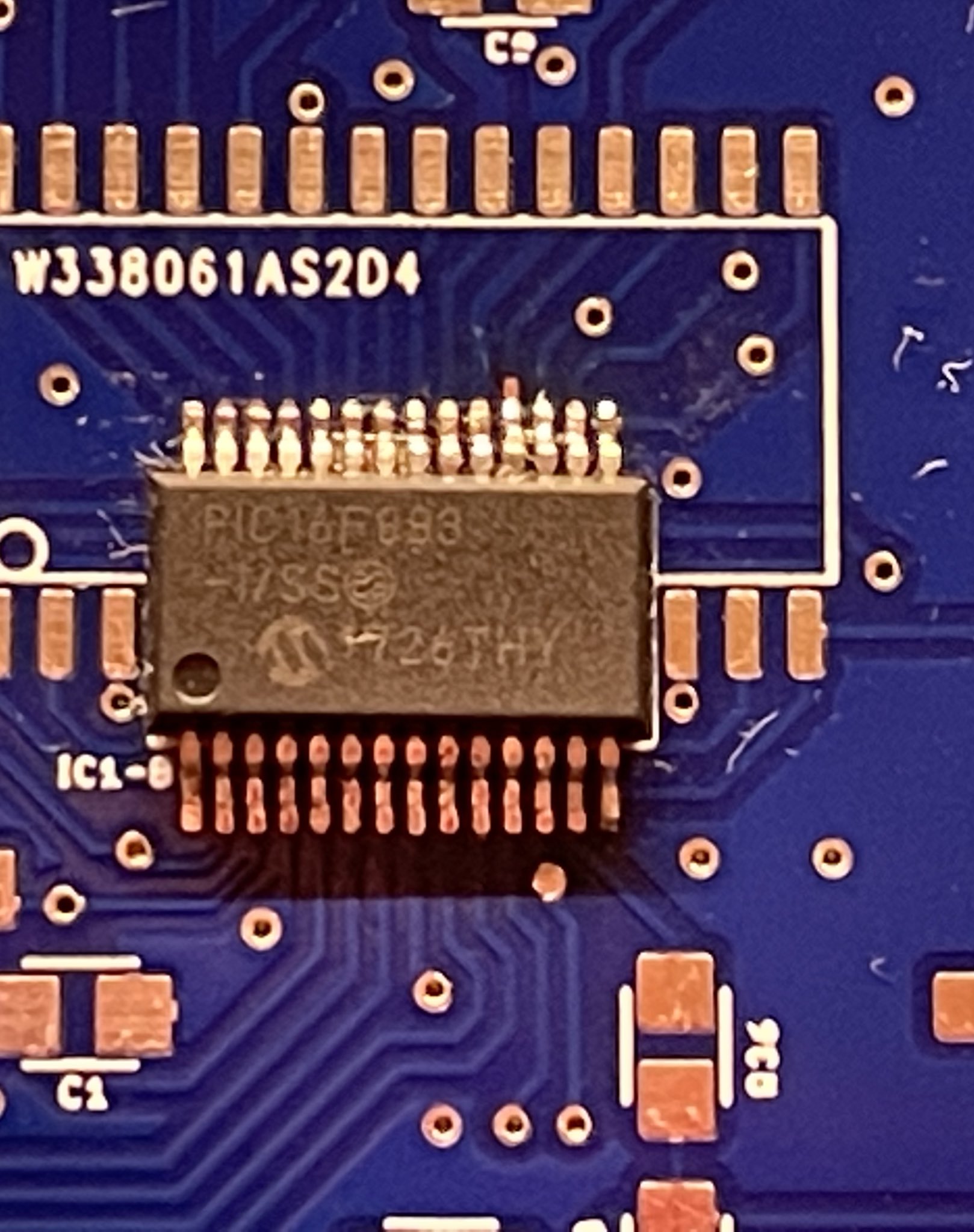 EDIT: a proposito, molto comodo il doppio footprint per il PIC16F883. Ne avevo uno in SSOP e ho montato quello. Ci è voluto qualche tentativo con la trecciola per eliminare i corto circuiti, ma alla fine il risultato è accettabile per una saldatura manuale così piccola.