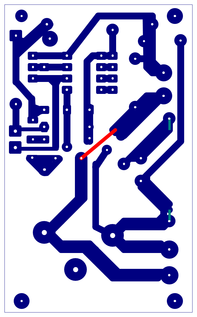 Come vedi ho cancellato una pista ( che provocava un corto secco) e indicato in rosso il collegamento da farsi.