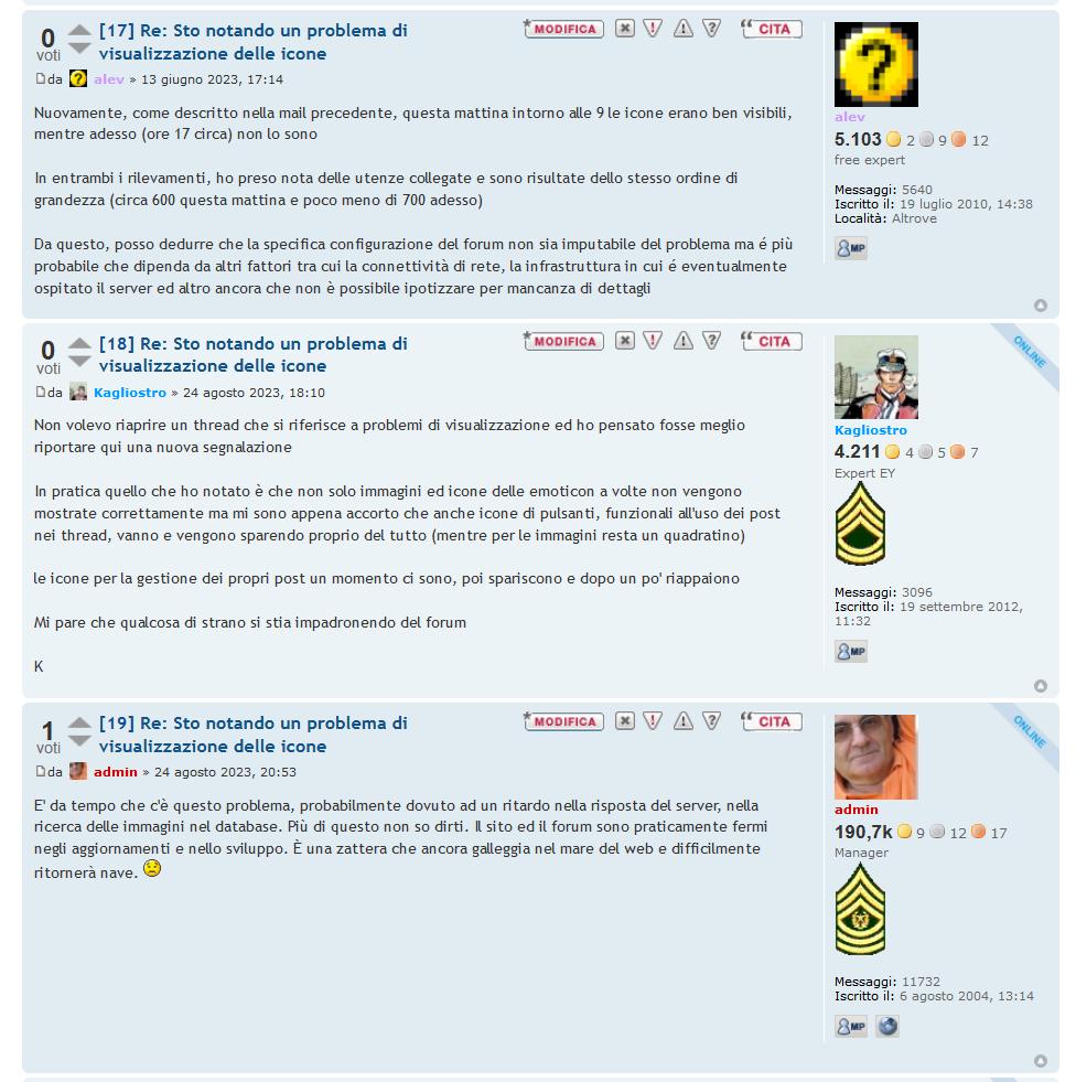 A me ora carica tutto, icona piccola tua (admin) compresa. Mi pare stia funzionando tutto come un tempo .