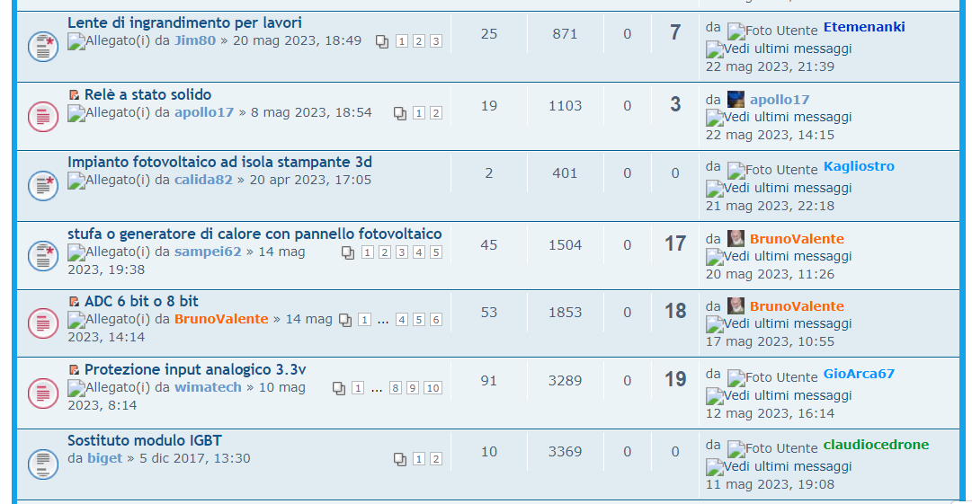 le piccole icone che dovrebbero accompagnare i singoli thread solo in pochi casi sono visibili