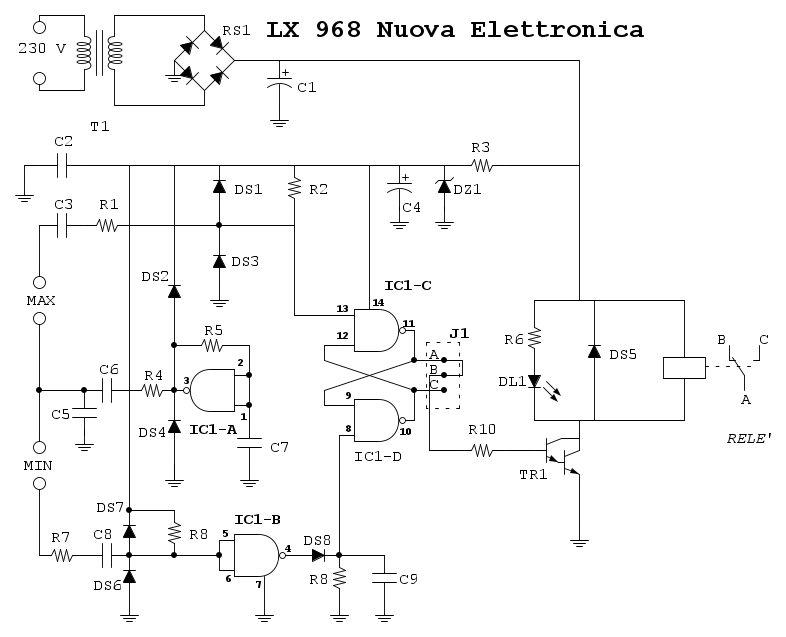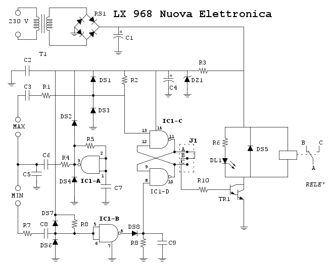 Buon giorno a tutti, sono alle prese con un circuito di Nuova Elettronica che mi serviva per pompare l'acqua in una cisterna quando l'acqua scende ad un livello prescelto. Datosi che l'acqua che pompo viene da un invaso e a causa delle alghe che si formano, l'acqua risulta alquanto sporca e con elettrodi metallici dopo poco vi si attacca una sostanza che isola questi sensori. ho deciso di comprarne due di quelli con magnete e contatto REED, purtroppo la scheda non funziona, credo perché il filo di minima attiva da solo la scheda difatti se provo a staccarlo lei parte vorrei sapere se si potrebbe diminuire la sensibilità di dell'entrata MAX, se si come devo intervenire. Allego lo schema.