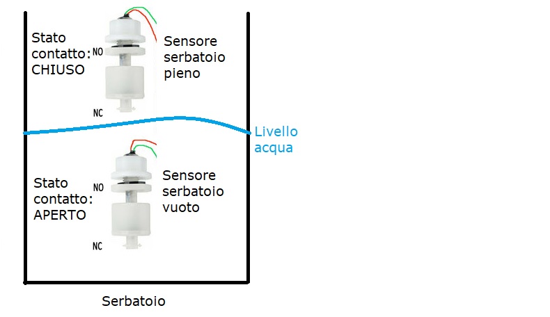 - il contatto di serbatoio pieno dovrebbe essere NC (Normalmente Chiuso) ed aprirsi quando il serbatoio e' pieno