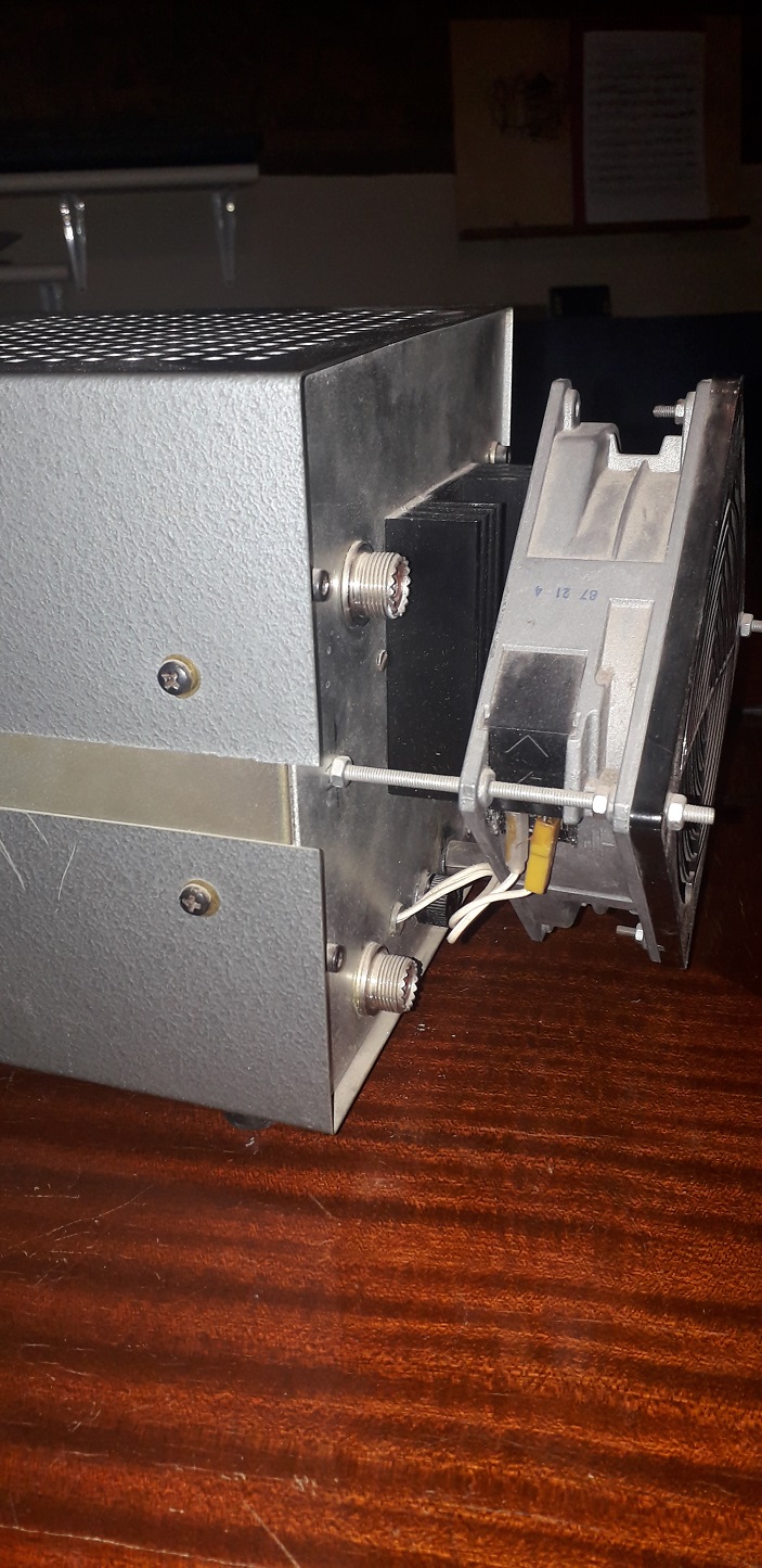 Per il momento l'amplificatore assorbe 8 A a 12 V, sto usando un alimentatore da server, e penso che corrispondano a 96 W.