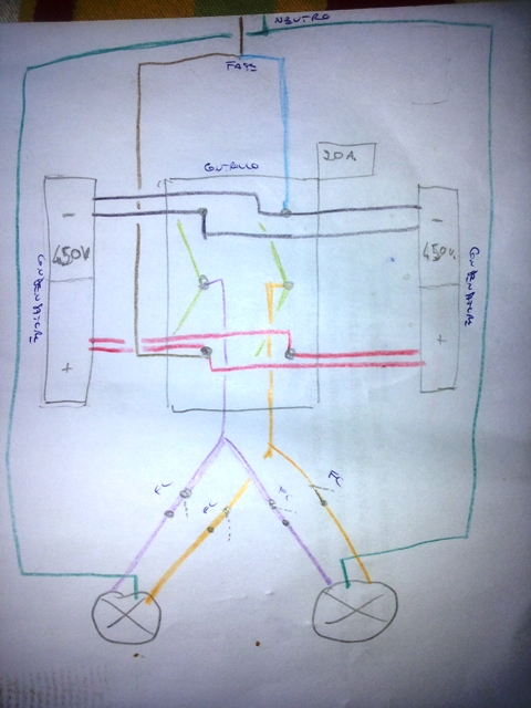 Come dicevo, il condensatore ha due fili in ingresso(uno rosso e uno nero) e due in uscita(il rosso per avvolgere il cavo ovvero per la salita, il nero per svolgere il cavo ovvero per la discesa)