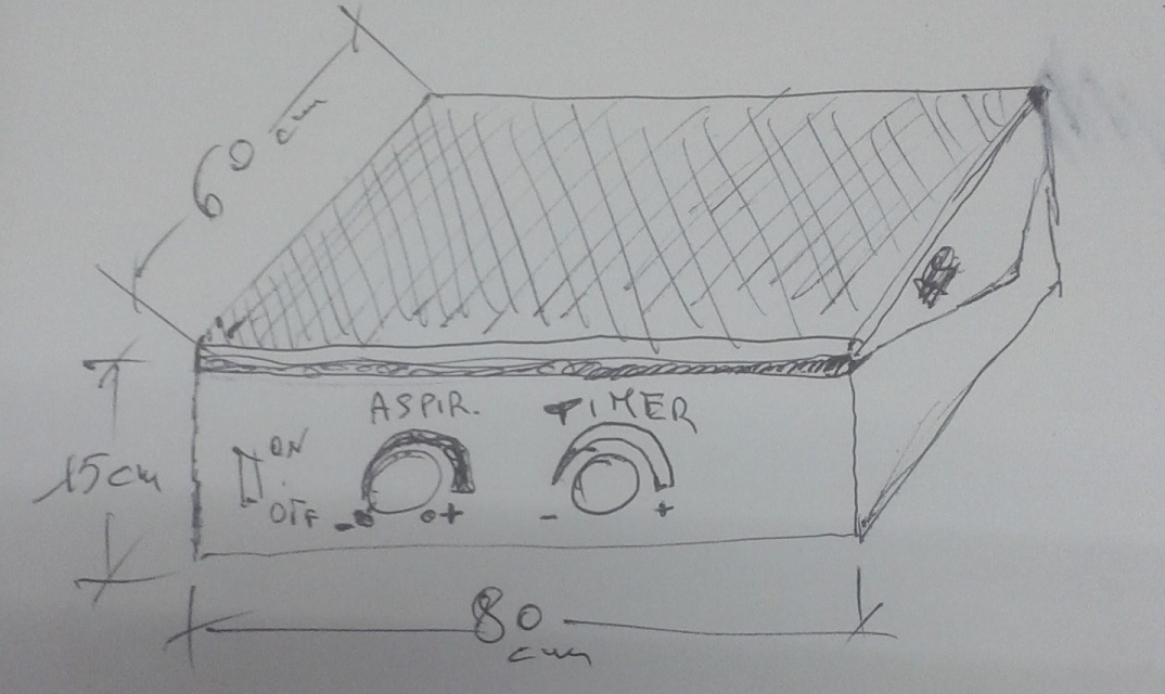 La cappa dove lavorerai è costruita in tela o materiale che ritieni idoneo, ma fatta in modo che possa ammainarsi come se fosse una piccola tenda canadese, anche se la farei più trapezoidale e con il lato frontale dove lavori, mancante o .........