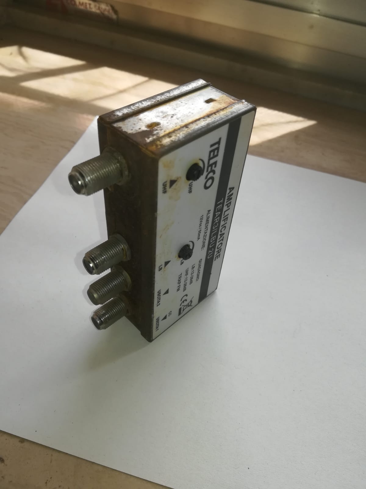 No ragazzi l'amplificatore è DTT è utilizzato ancora oggi questo modello sè parliamo di mancanza di filtraggio LTE si ....però come già detto forse per agenti atmosferici il box è la fascetta di tenuta chissà che fine avranno fatto!!...peró io noto i punti della foto evidenziati come arruginiti è così anche la schermatura è tutta arruginita....(dopo magari posteró una foto)...sono sicuro che lui ad essere guasto perché sostituendolo con uno nuovo l'impianto è tornato come nuovo!