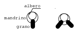 Se la situazione è quella di sinistra qui, allora la soluzione è o quella di destra (che porta ad un fissaggio molto instabile e fonte di vibrazioni) o l'aggiungere DUE grani aggiuntivi, che però vanno posizionati con una precisione che a mano libera su un diametro di una decina di mm semplicemente non è fattibile.