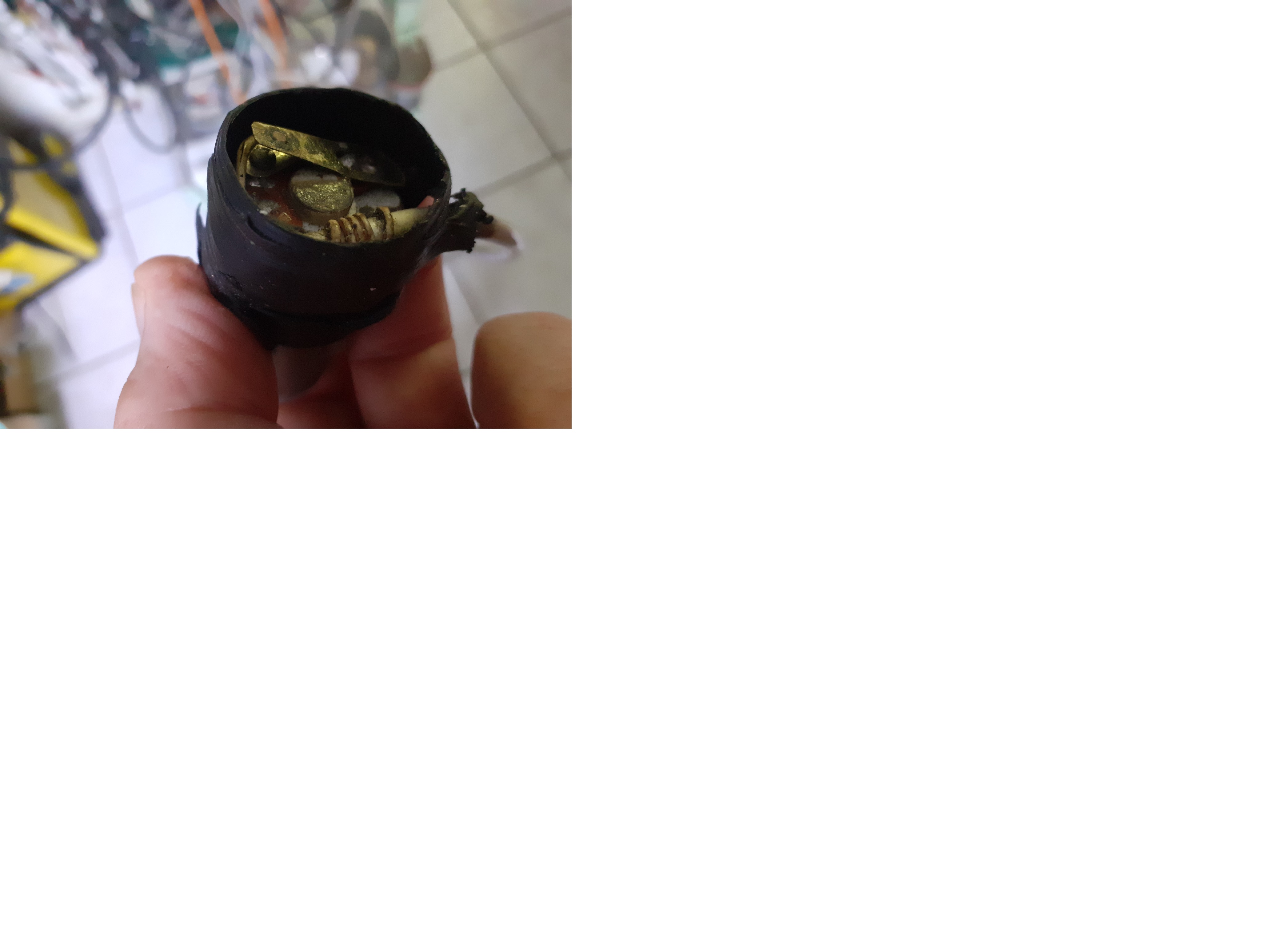 Nella foto manca la copertura del pulsante, che è realizzata con un pezzo di gomma tenuto con del nastro autovulcanizzante.