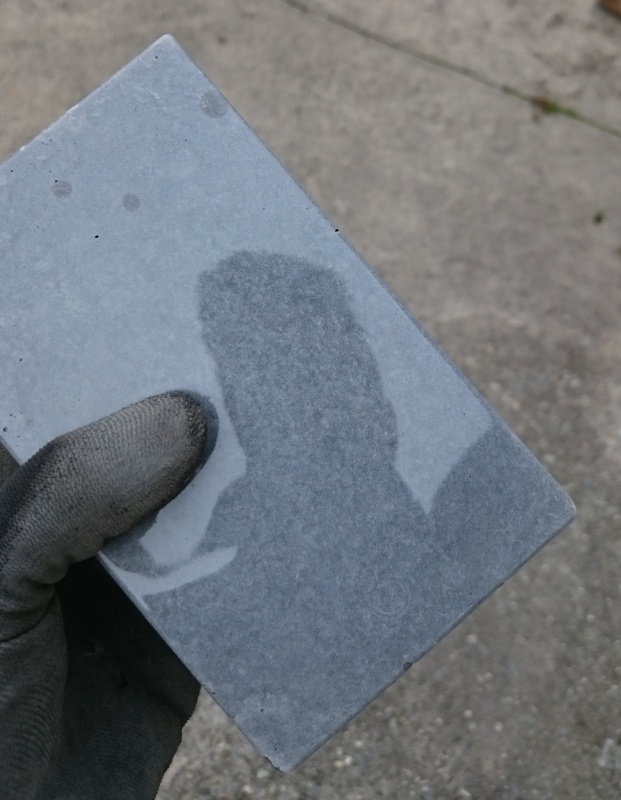 Questo sono io riflesso in un blocchetto di calcestruzzo autocompattante. Niente lucidatura, niente cera, niente lacca.