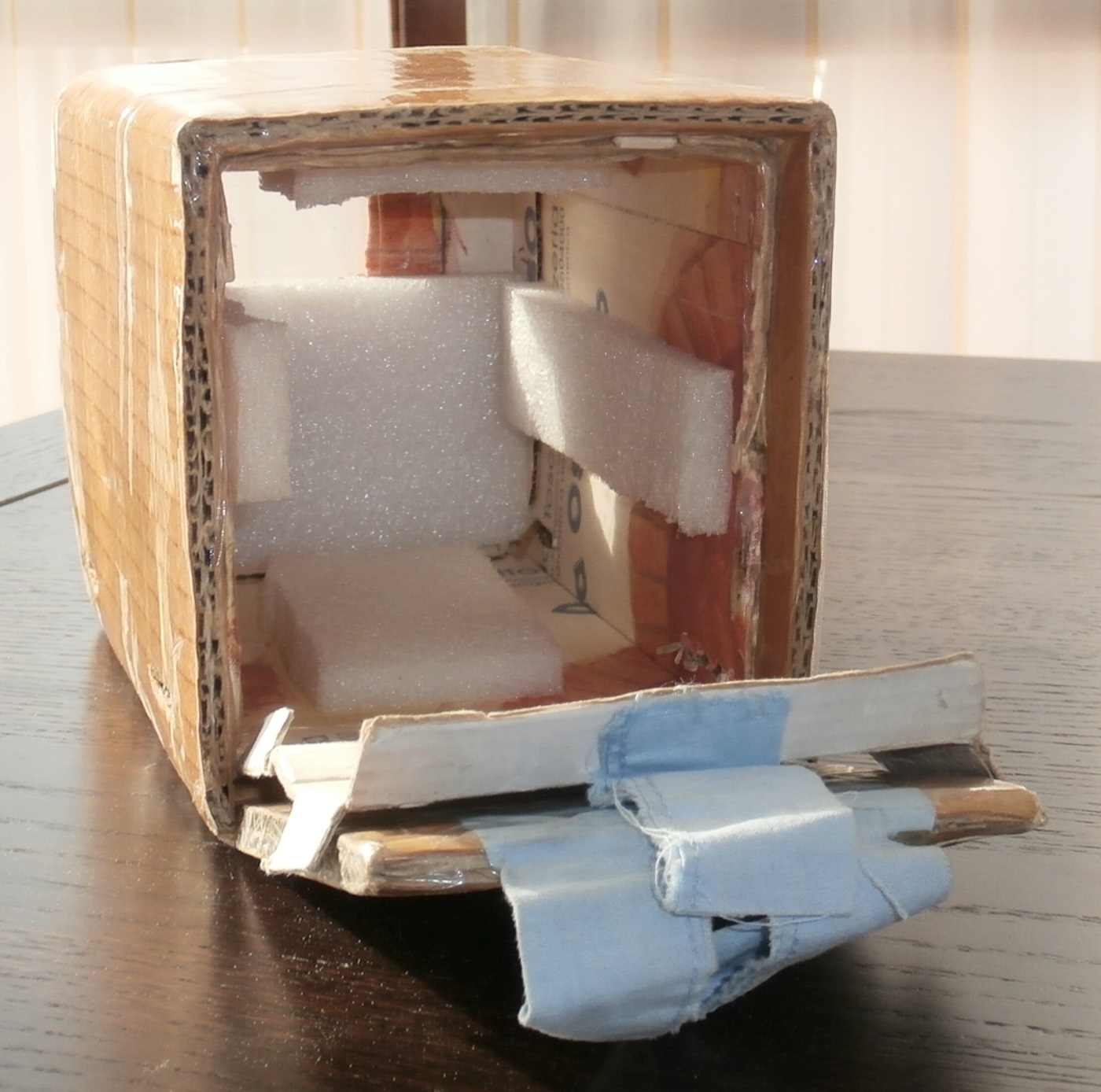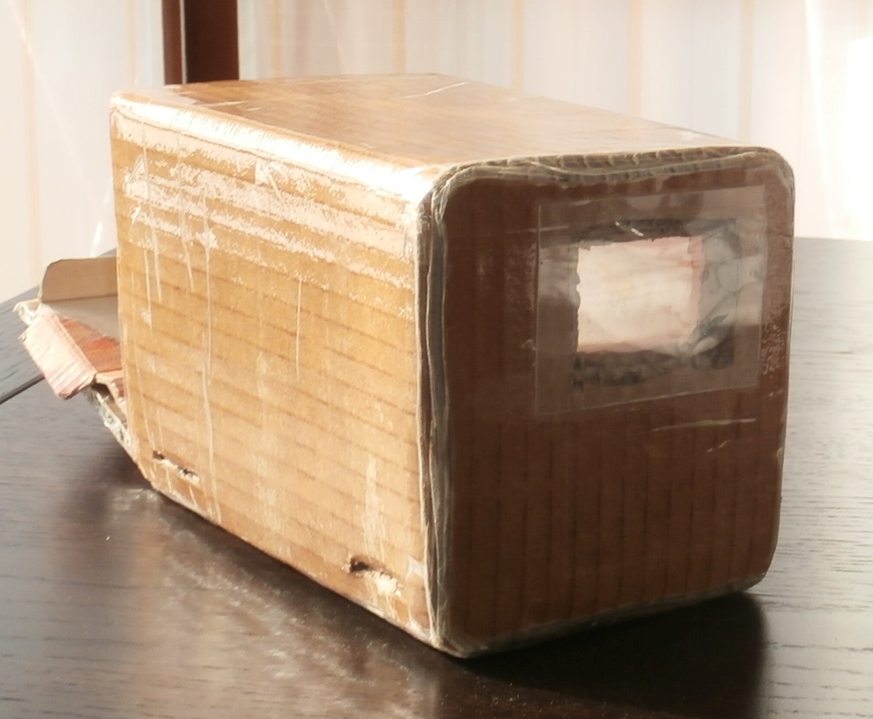 Eppure...con un po' di ingegno e ovviamente materiale povero, ecco un contenitore quasi waterproof grazie al nastro adesivo trasparente: