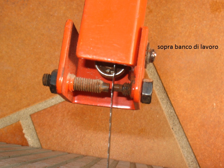 Per evitare la fuoriuscita della lama questa deve essere ben tesa in modo da non slittare sulla puleggia trainante, se slitta salta via di sicuro (non esagerare).