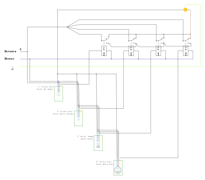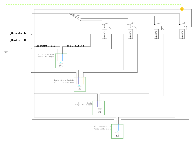 Se volessi aggiungere un'interruttore di bypass per tenere la luce sempre accesa, ovviamente andrebbe in parallelo ai contatti dei rele'.