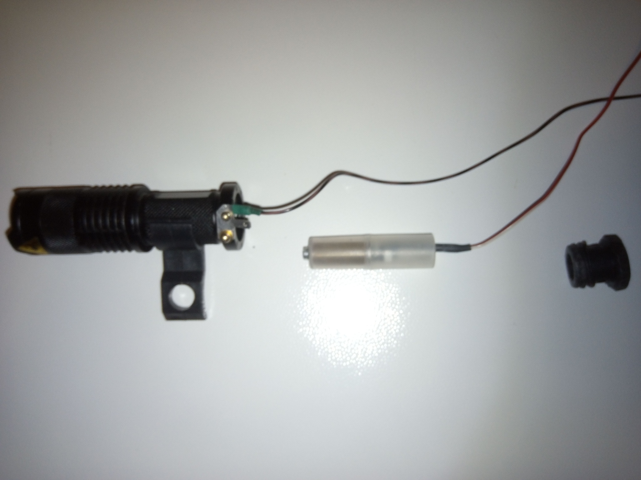 Il terminale che chiude la torcia, è un tappo plastico a vite di una batteria da automobile. Se avessi utilizzato il terminale originale avrei dovuto danneggiare l’interruttore della torcia e non mi sembrava una buona idea.