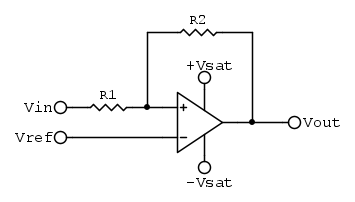 Guardando lo schema, mi sembra di capire che la V_ref applicata al pin invertente V^- determini la soglia superiore. Mentre continuo a non capire cosa determina la soglia inferiore.