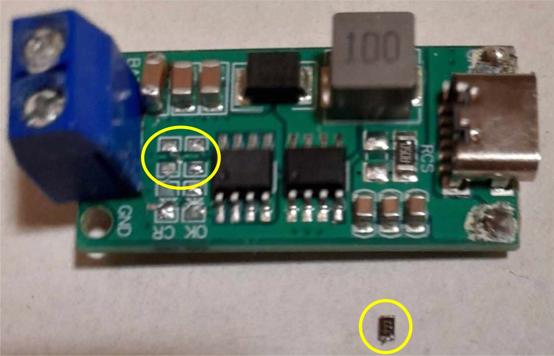 Ho recuperato uno solo SMD perché gli altri mi sono caduti. Il componente tende a rimanere attaccato alla punta di uno dei due saldatori e non ero interessato a recuperarli.