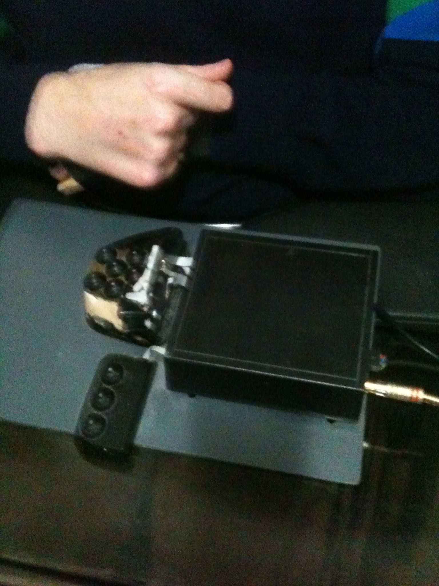 Il mio pad e' formato da un braccetto dove e' montato un joystick per muoversi e uno swich per passare da una levetta a l'altra (inizia sempre con la levetta desta) davanti a me sulla carrozzina " ho la piastra del pad " e accanto ho raccolti e incastonati ho i pulsanti . Spero di essermi spigato.
