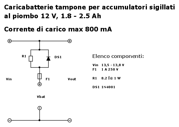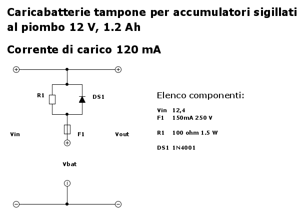 elektronik ha scritto:ho notato che le batterie da 12V - 1.2Ah massimo arrivano ad una carica di 12.60, quindi deduco che la carica di mantenimento dovrebbe restare sui 12.40V con una corrente di 120mA