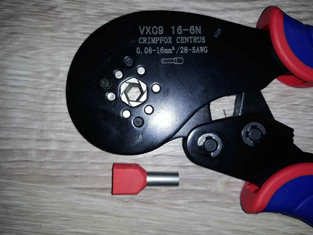 Funziona bene, ma non riesco a crimpare i puntali T 10-14, come quello rappresentato in figura, per unire due cavi unipolari da 10 mm2 in puntale T, perché lo stesso non entra di pochissimo.