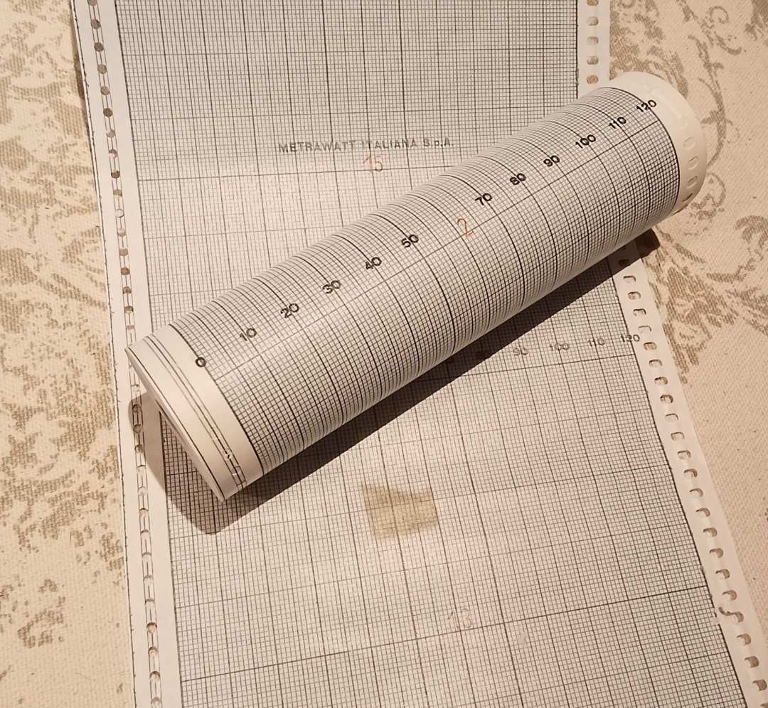 Ho Ritrovato diversi rotoli nuovi di carta millimetrata per registratore marchiati Metrawatt Italiana SPA.
