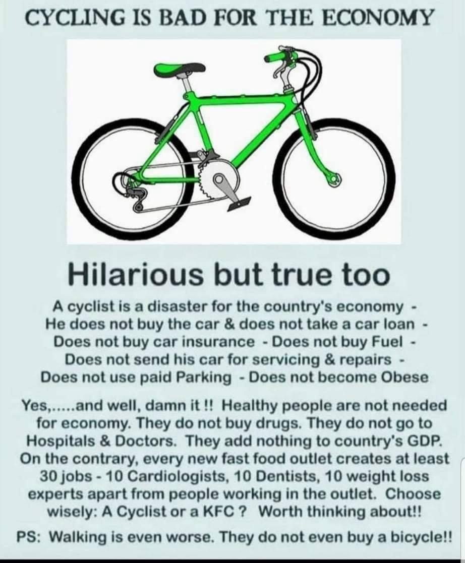 Max2433BO ha scritto:con la bicicletta (o il monopattino) ci si crede liberi di far quel che si vuole per il falso messaggio: sono un utente "debole" della strada, nessuno mi punisce, sono gli altri che devono pensare a quello che faccio.