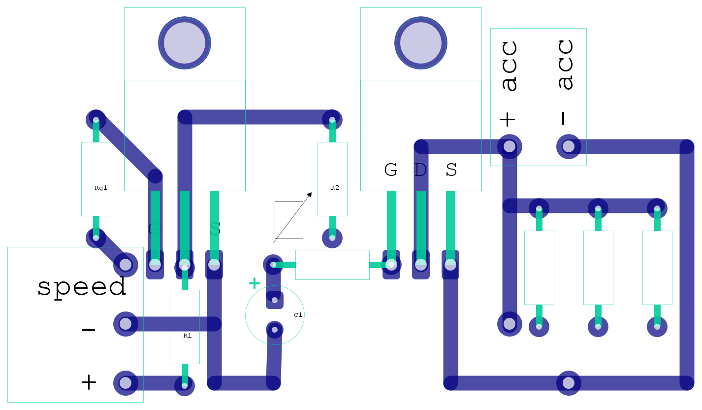All'aumentare della velocità il 2o FET "apre" e viene inserita Rs in serie al potenziometro acceleratore, simulando un "filo di gas" e riducendo di conseguenza la frenata.