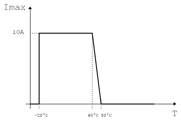 La corrente e tensione massima vengono regolate in base alla temperatura letta da appositi sensori, secondo le curve seguenti: