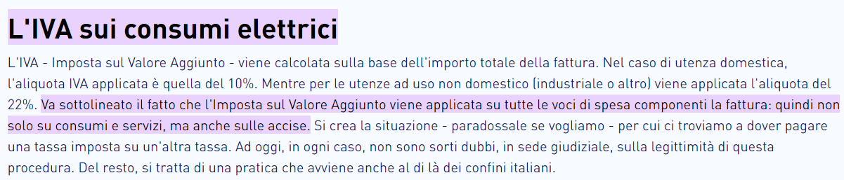 Comunque, nelle bollette si paga già l'iva anche sull'importo delle altre tasse presenti