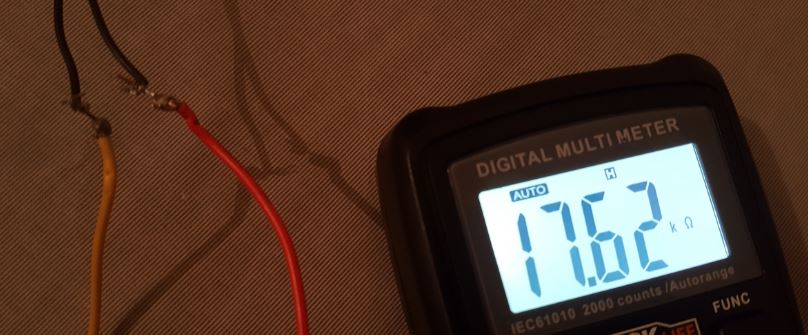 Posta un'immagine dei conduttori di collegamento, e misura in ohm il valore della resistenza ai capi dei conduttori a temperatura ambiente.