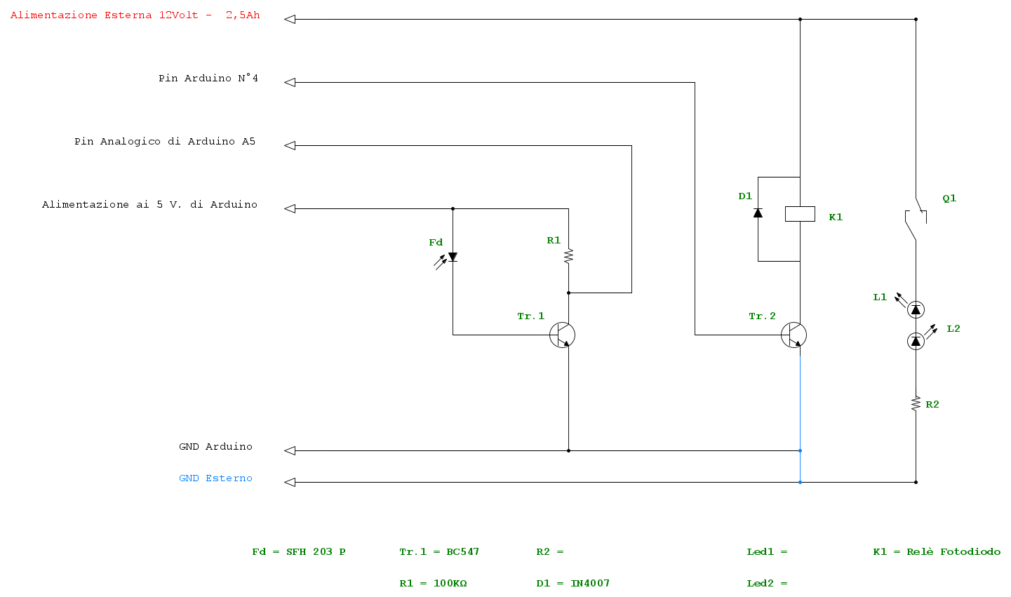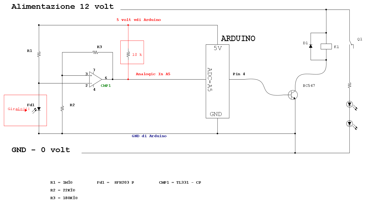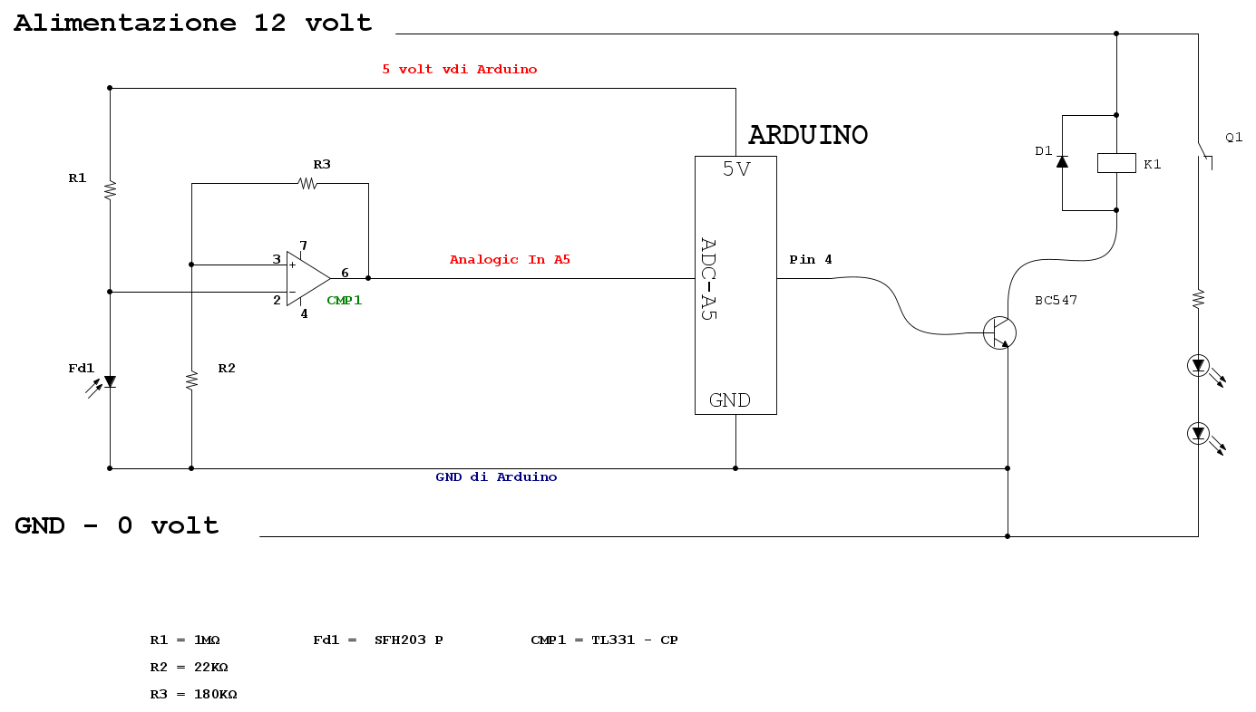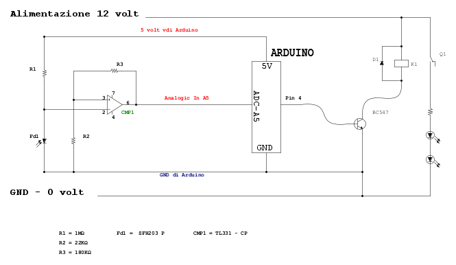 Potrebbe anche essere necessario "scambiare di posto" R1 e FD1 (la logica del funzionamento viene invertita)
