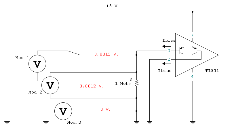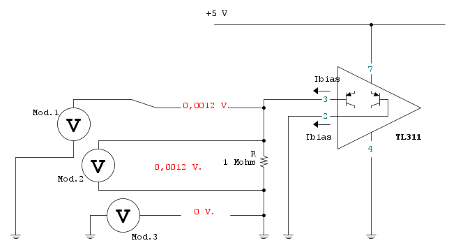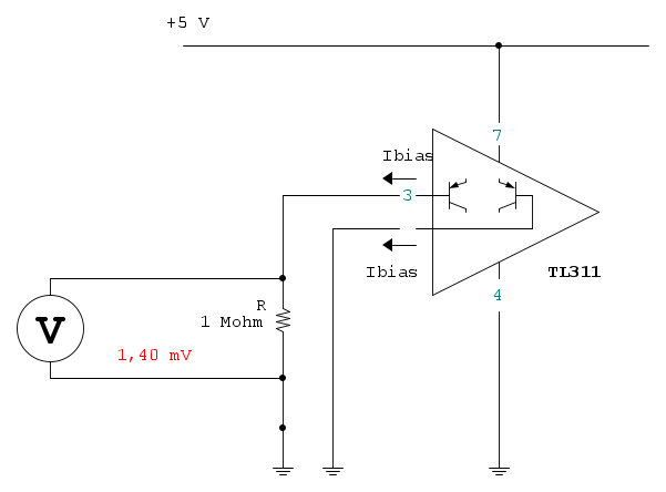 Allora possiamo dire che la corrente di bias del TL311 vale