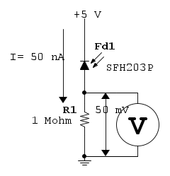 I = \frac{50 mV}{1 Mohm} = 50 nA