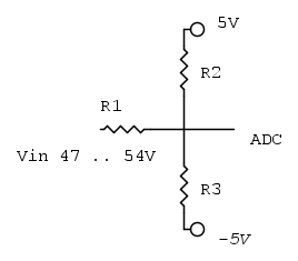 Misurare tensioni DC fra 47V e 54V