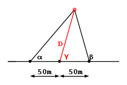 Due postazioni rilevano gli angoli \alpha e \beta