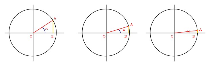 allora, il segmento rosso è il raggio del cerchio, mentre quello giallo è il seno dell'angolo x.