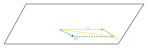Inoltre, poiché riesci a riempire tutto il piano, hai anche trovato una base dello spazio euclideo di dimensione 2 (la base è formata da \vec{v_1} e \vec{v_2}, e ogni vettore del piano sarà linearmente dipendente da questi due).