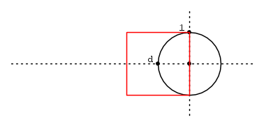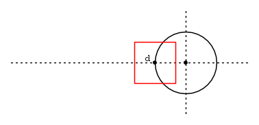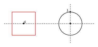 In questo caso (banale) invece, il quadrato ha lato 2, il cerchio è di raggio unitario e d = -1.