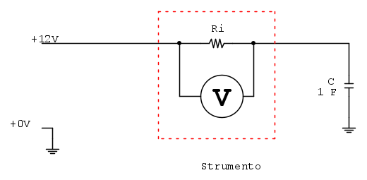 Quando giro la chiave sul quadro e applico "di botto" 12 V perche' lo strumento non prende la "botta" di carica di C da 1 F?